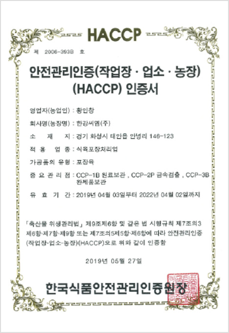 HACCP인증을 통한 철저한 위생관리로 깨끗하고
